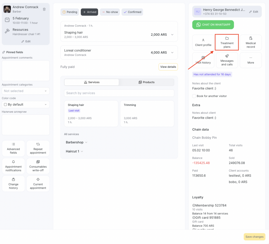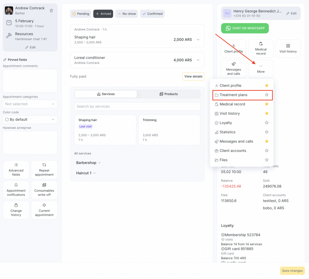 - Open the patient’s appointment and go to Treatment Plans. To do this, click More in the client actions panel.