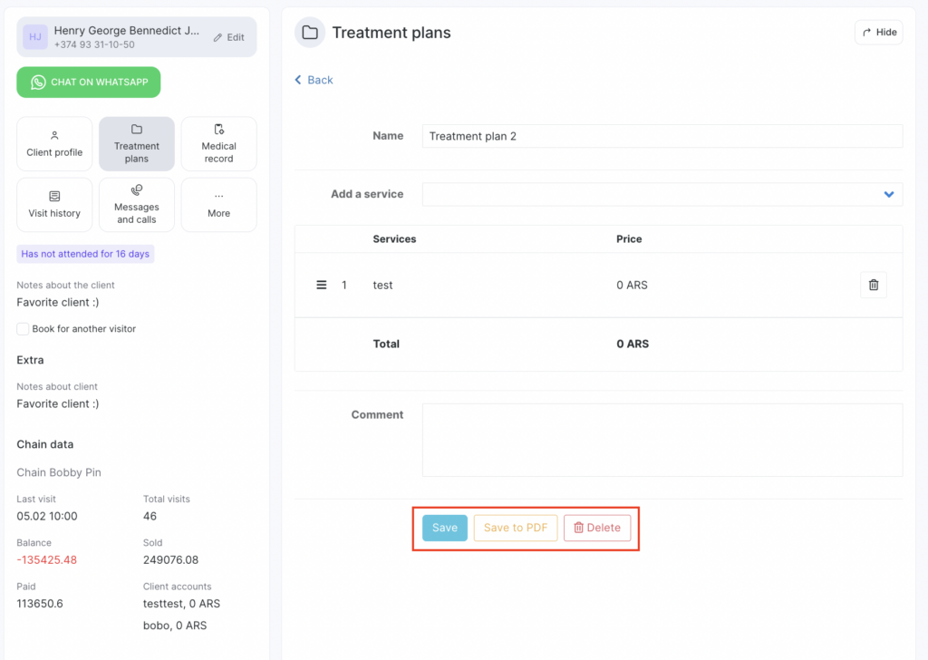 - Save the treatment plan. If needed, you can also save it as a PDF and print it.