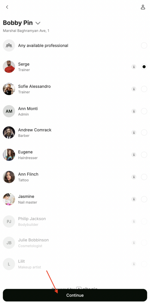 You can assign a preselected professional. If you choose a specific employee in this field, that employee will be selected by default for online booking. Clients will be able to book appointments with them right away, but they can change their choice if needed.