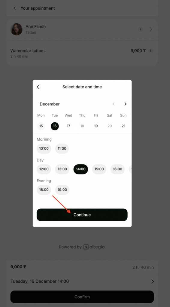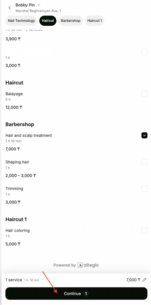 In the Menu format, the booking steps are almost the same as in the step-by-step format. The differences are how the nearest available time is shown on the employee selection step, and the ability to edit booking details on the final step.