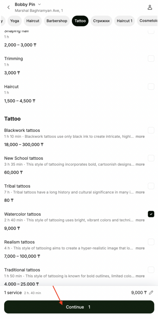 - Menu — with this option, the client can choose employees, services, and time in any order that’s convenient for them. It’s the most universal scenario: it lets clients book in the way that works best for them right now.