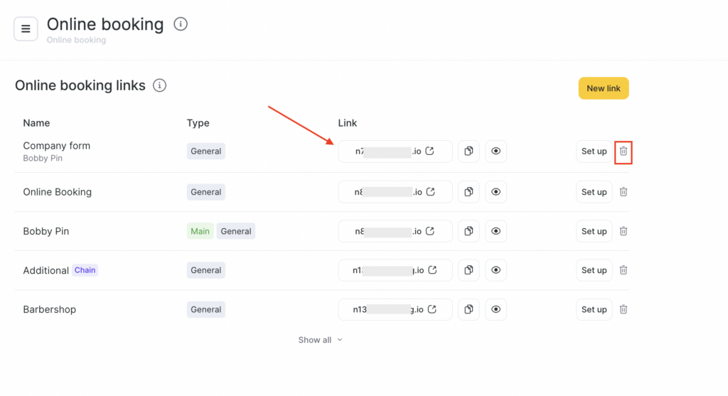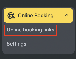 2. You will be taken to the “Online booking links” page. Here you can see two buttons:
