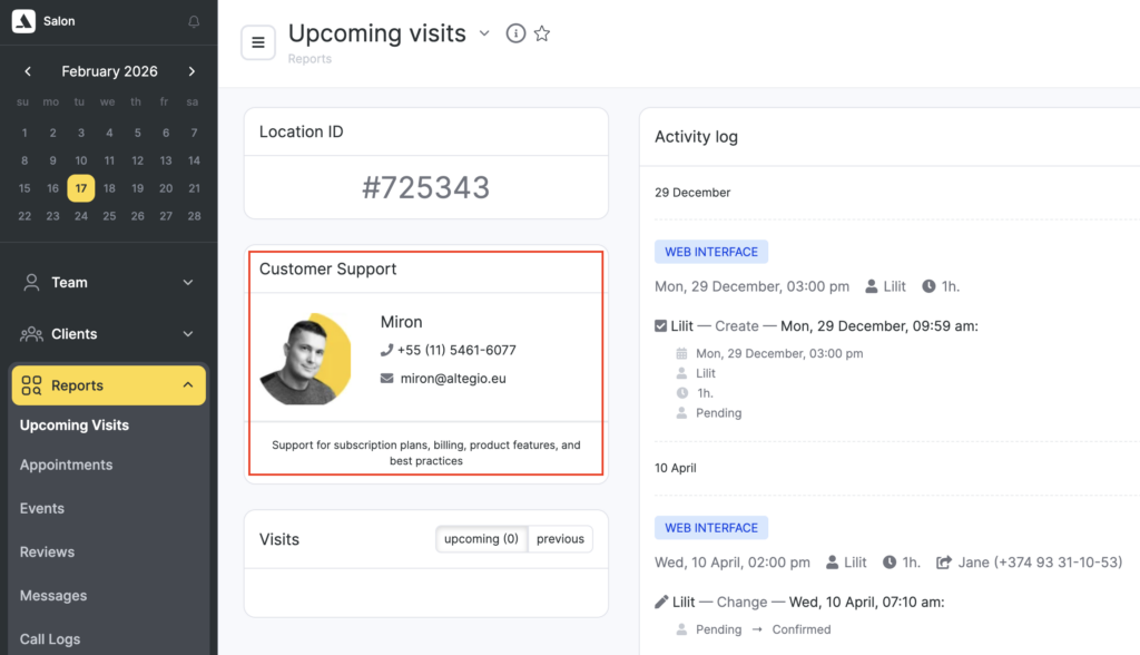 Also you can write to us via chat on the website or in the “Support” section in the Altegio mobile application.