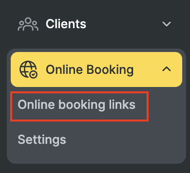 - In the main menu go to Online booking > Online booking links.