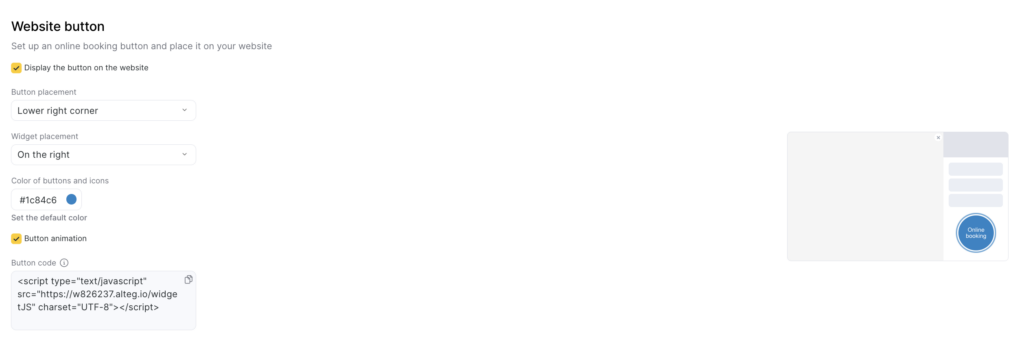 - Scroll to locate the Website button section, and be sure to check the Display the button on the website box.