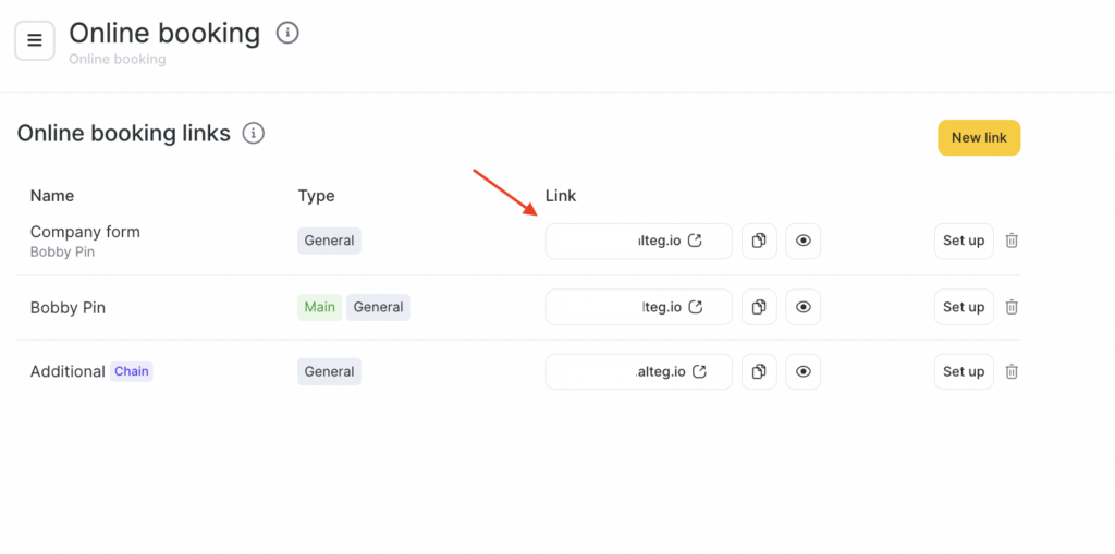 - In the main Altegio menu, go to Online booking → Online booking links.