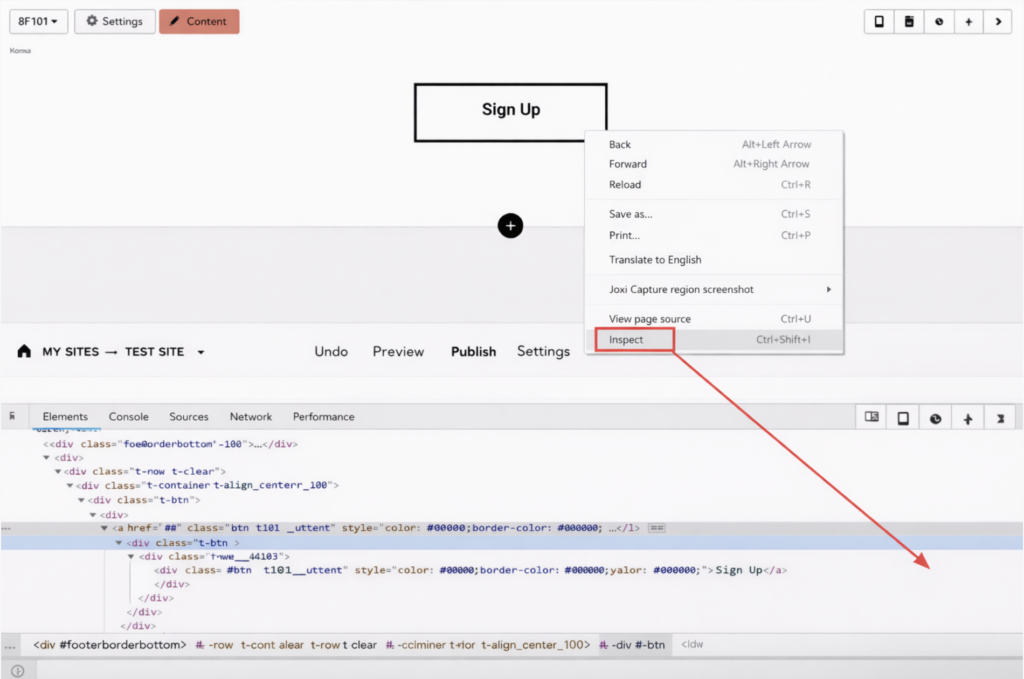 - Go to the published website and right-click the online booking button, then select Inspect (or View page source / Inspect code). Copy the contents of the class field: