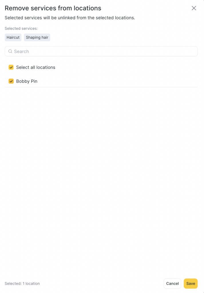 - Select the locations where you want to delete the selected categories or services from.
