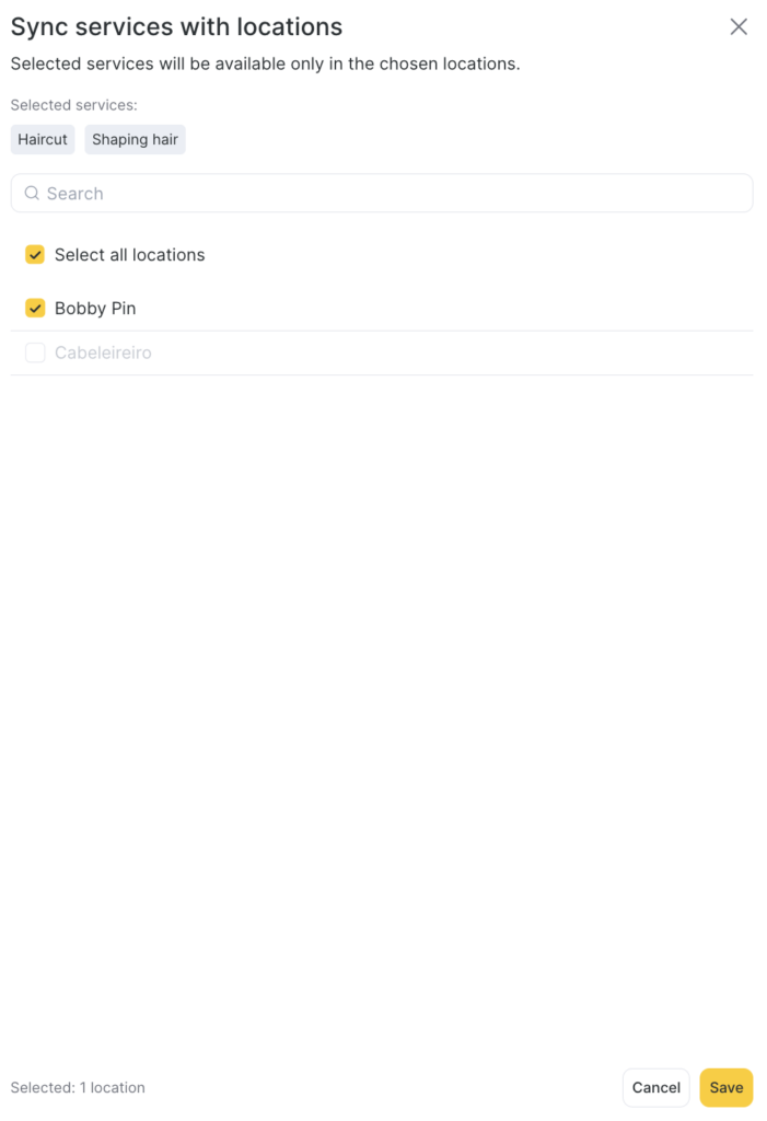 - Select the locations where you want to add the selected services to.