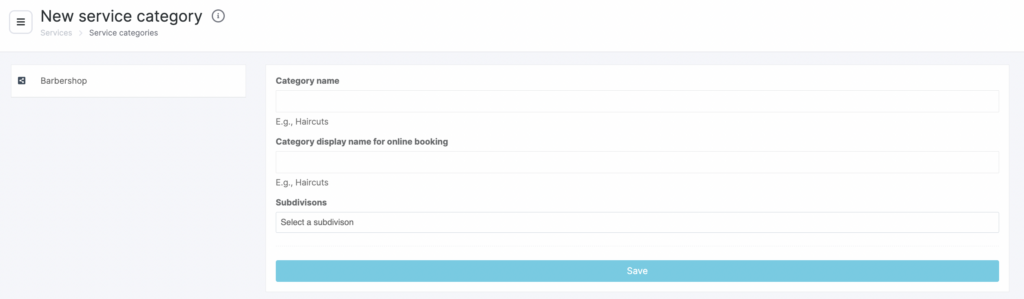 - the online booking name (this is the name clients will see during online booking; if you leave the field empty, the main category name will be used)