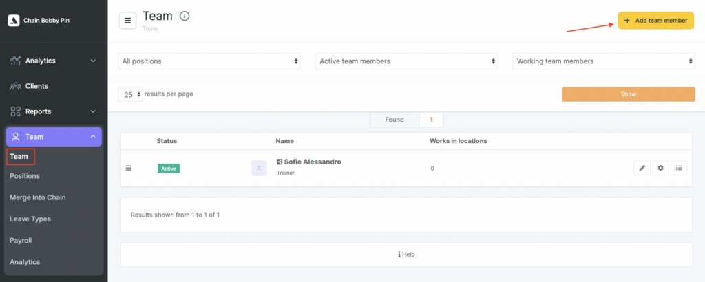 - In the main menu of the chain interface, go to the Team – Team section and click Add team member button.