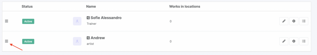 button on the left of the team member and drag to the required position. This order is displayed in the appointment calendar and online booking widget.