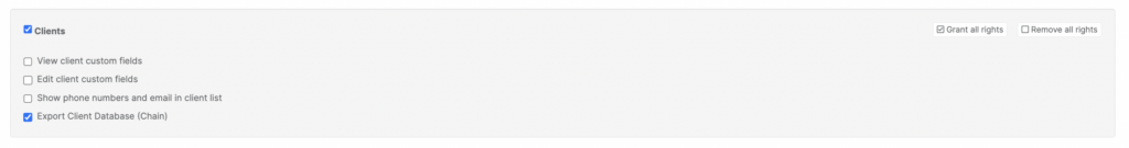 Actions can be performed either with all clients found in the database, or only with selected ones. By default, only the action buttons for all found clients are active. To select a client, check the box next to the name, after that the action buttons for selected clients will become active.