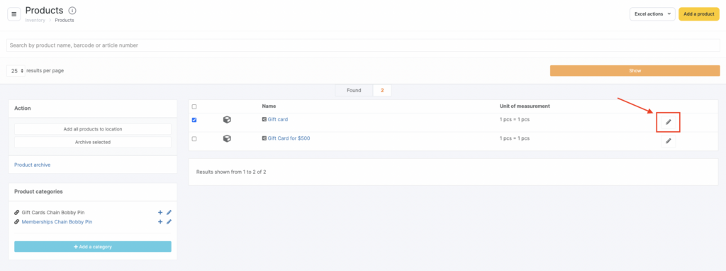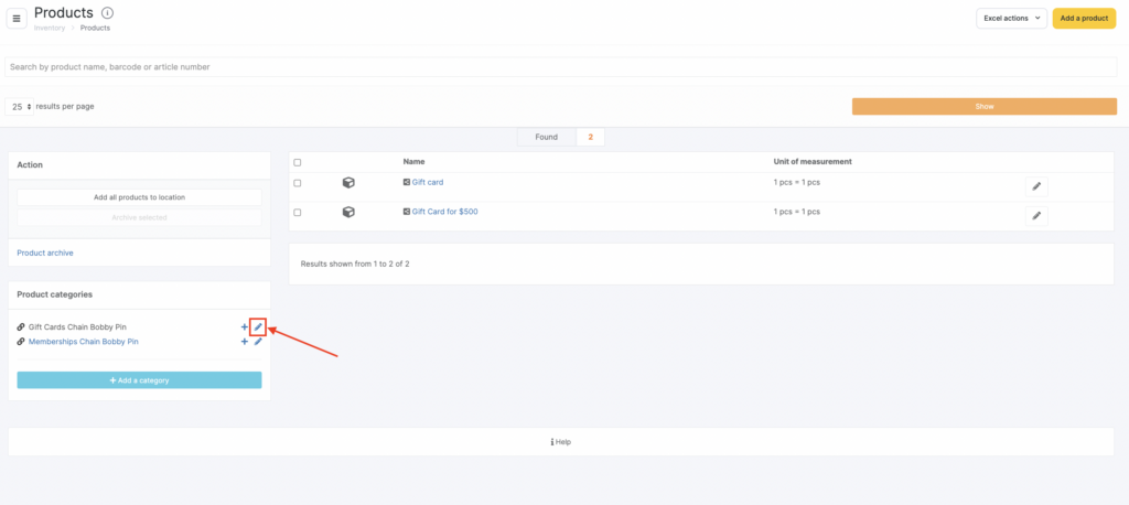 1. After creating and configuring categories, add products to inventory. Products can be added individually or in a list via Excel. Read more in the articles: Creating and configuring a new product and How to add a list of products using Excel.