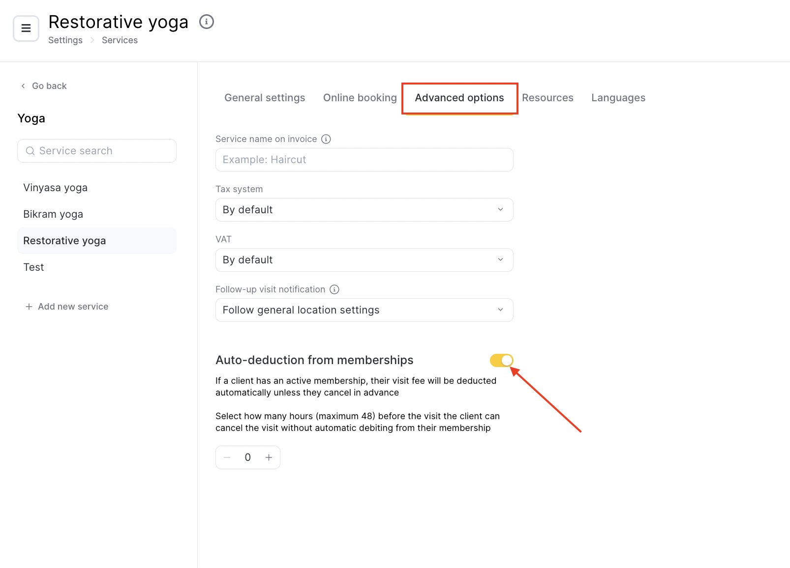 In the service settings in the Settings > Main settings > Services > Advanced options section an option to automatically debit sessions from membership was added. If this setting is switched on, then the logic described below will apply. It also applies both to group events and individual appointments.