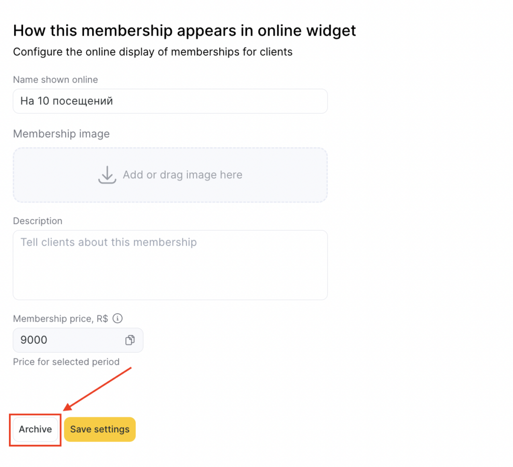 Archived memberships are available for payment — you can use them to pay for services. More about archiving is in the article.