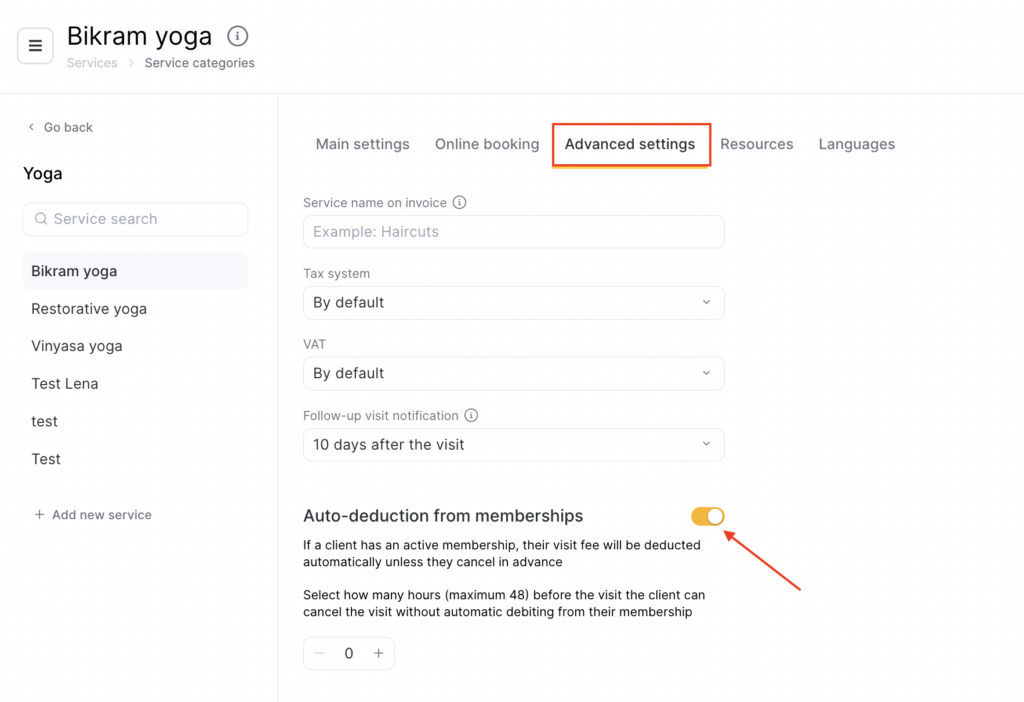 Automatic deduction is configured in the branch under Settings > Services. You can read more about this in the article.