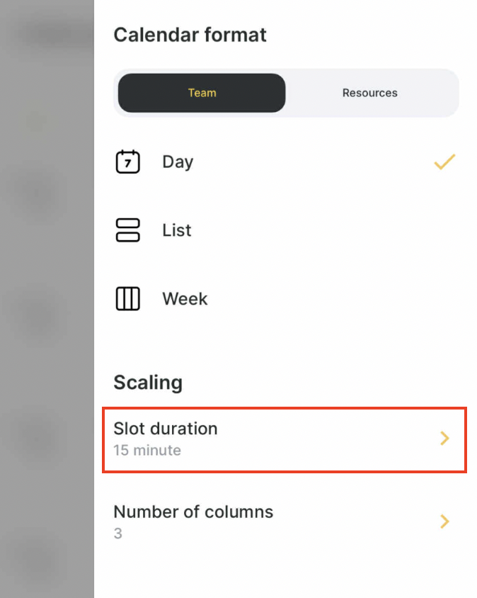 If you select fewer columns in the settings than are currently displayed in the calendar, a horizontal scroll option will be available for navigation.