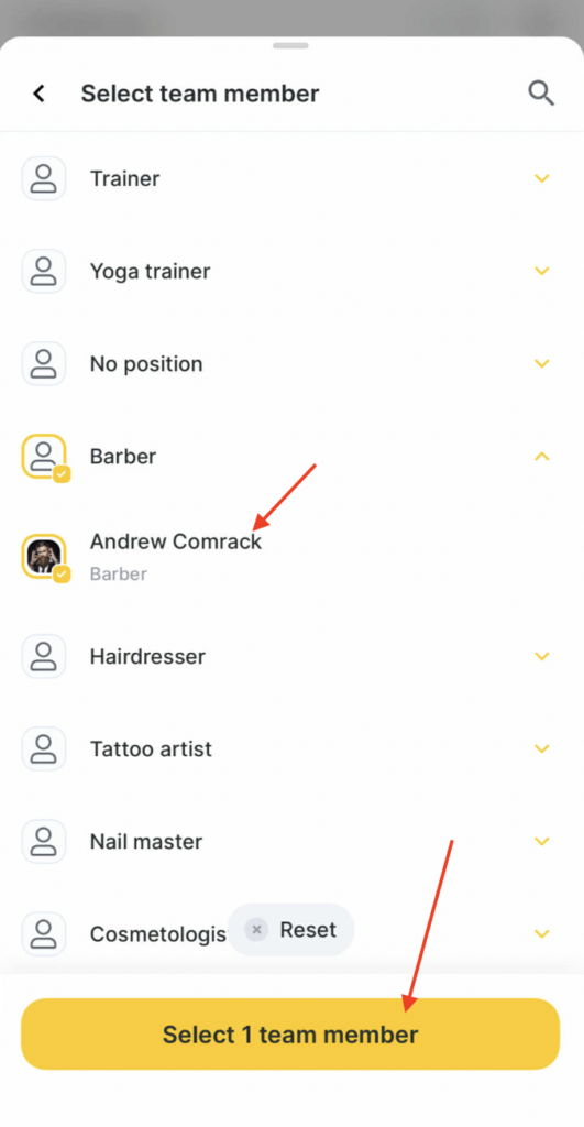 Click the Select 1 team member button.