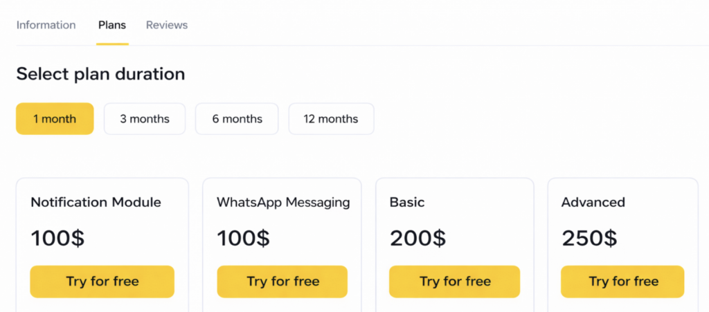 In the Marketplace, you can publish your pricing plan grid. This helps users make decisions faster when choosing a service and compare different partners.