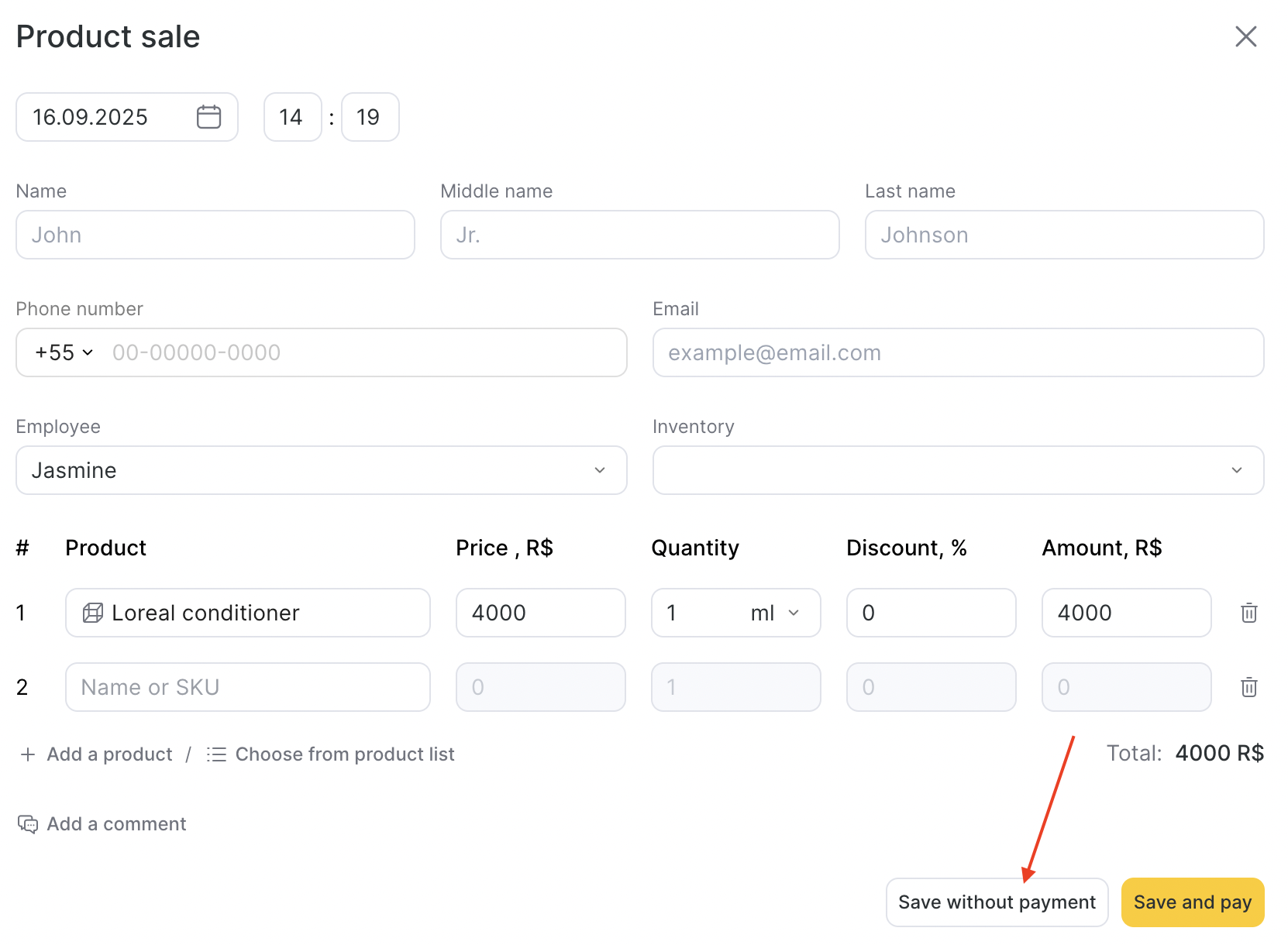 - Be sure to click “Save Without Payment.” After clicking this button, both the financial and inventory sale transactions will be deleted.