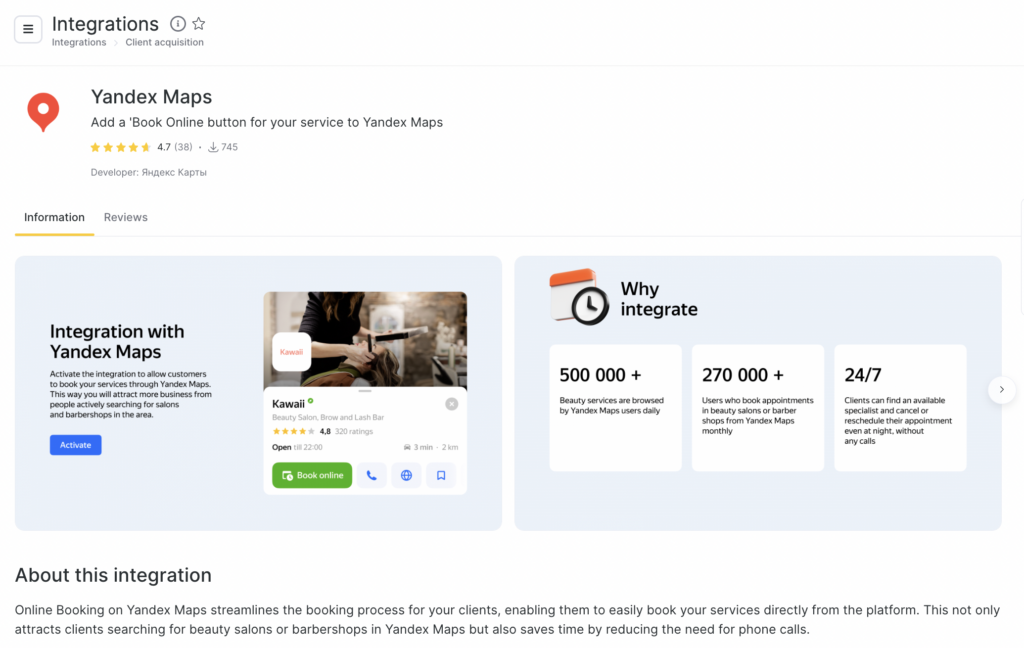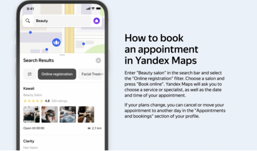 With the Yandex Maps service, companies can attract new clients who can book services online.
