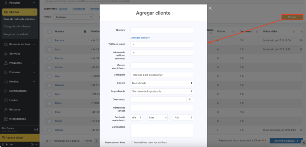 Para añadir un cliente a la lista Todos los clientes, ve a Clientes > Todos los clientes y haz clic en el botón Añadir cliente.