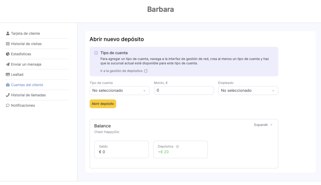 La función Cuenta del cliente te permite recargar y realizar pagos por adelantado en la cuenta personal del cliente, para que pueda utilizar esos fondos en su próxima cita o, por ejemplo, pagar servicios para su hijo.