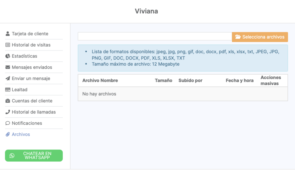Puedes subir archivos del cliente y almacenarlos en Altegio, así como descargarlos o eliminarlos.