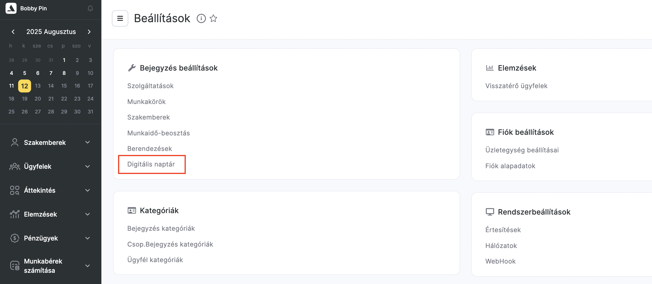 A főmenüben lépj a Beállítások > Bejegyzés beállítások > Digitális naptár menüpontra.