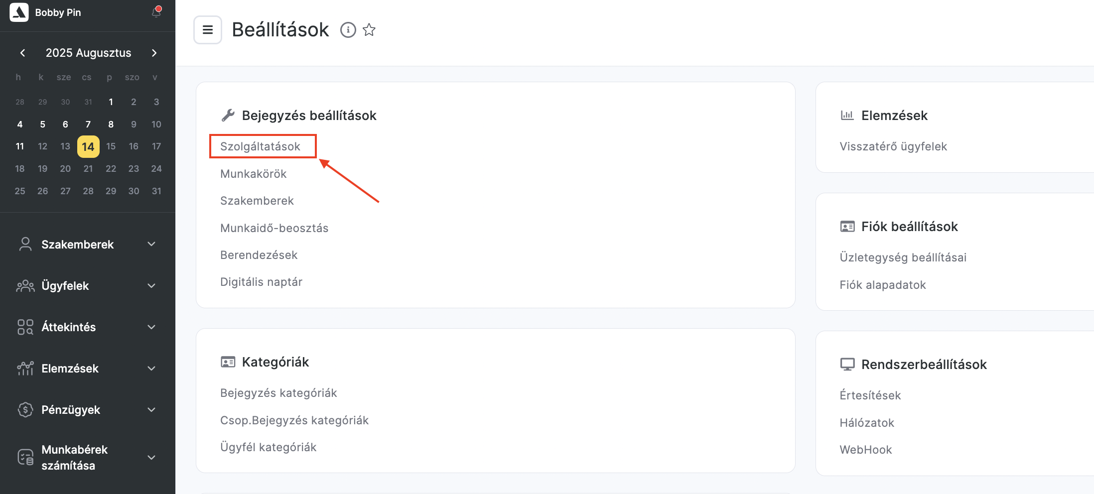 A főmenüben lépj a Beállítások > Bejegyzés beállítások > Szolgáltatások menüpontra.
