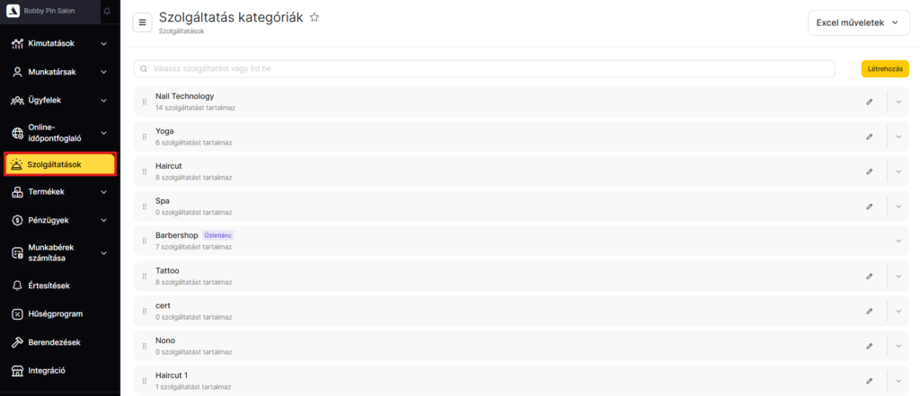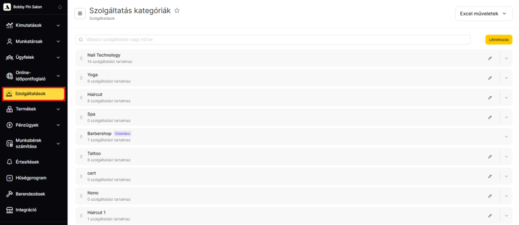 A Szolgáltatások részben megtalálod az összes szolgáltatáskategória és a hozzájuk tartozó szolgáltatások listáját