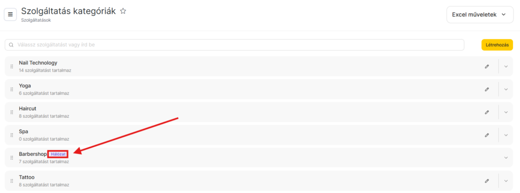 Ha egy szolgáltatáskategória mellett Hálózat ikon látható, akkor az hálózati kategória, és csak hálózati szinten szerkeszthető.