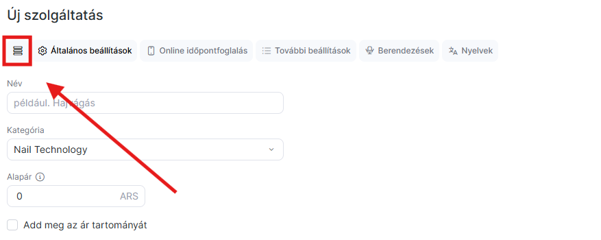 Add meg a szolgáltatás nevét más nyelveken is, hogy az ügyfelek akkor is láthassák, amikor az online foglalási widgetben nyelvet váltanak.