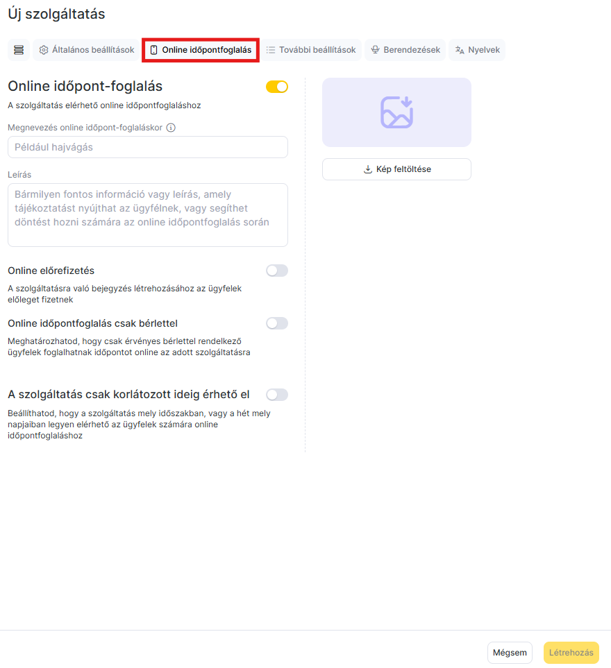 - Állítsd be, hogy elérhető lesz-e a szolgáltatás Online időpont-foglaláshoz.