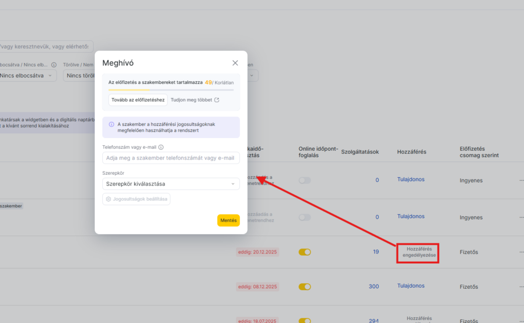 A munkatárs szerepkörének és hozzáférésének beállításáról részletesen a kapcsolódó cikkben olvashatsz.