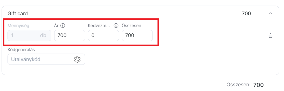 A Végösszeg automatikusan kiszámításra kerül a mennyiség és a kedvezmény alapján.