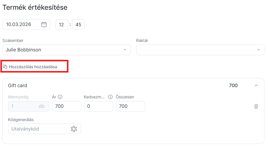 - Ha megjegyzést szeretnél hozzáadni az értékesítéshez, kattints a Megjegyzés hozzáadása gombra.