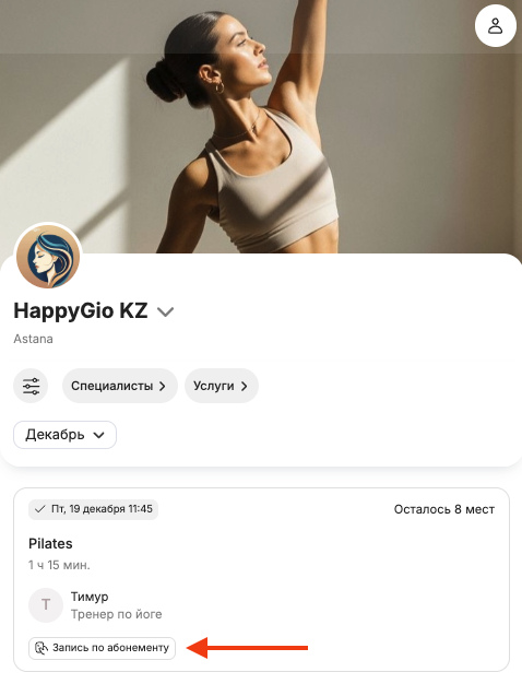 - Абонементом можно оплатить услугу, на которую производится запись.