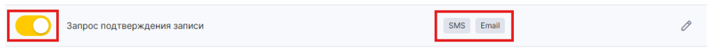 - В блоке Клиенту выберите тип Запрос подтверждения записи клиентом, нажав на название уведомления или иконку карандаша.