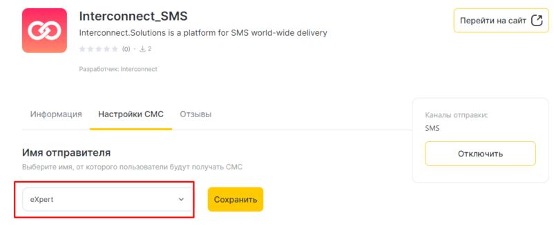 - Выберите имя отправителя если у вас их несколько. Сохраните настройки.