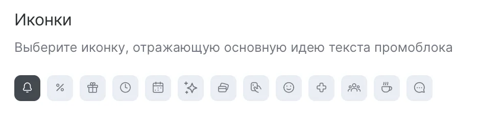 - Выберите иконку из предложенных опций, которая лучше всего отражает суть текста в промоблоке: