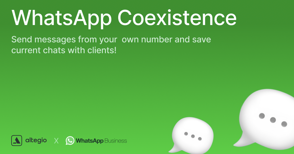 Интеграция позволяет импортировать контакты и до 6 месяцев истории переписки из приложения WhatsApp Business. После этого функция Coexistence начнёт работать в вашем аккаунте Altegio.