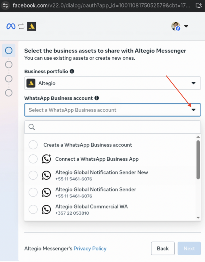 Выберите этот вариант, если ваш аккаунт WhatsApp Business отображается в списке ниже с правильным номером.