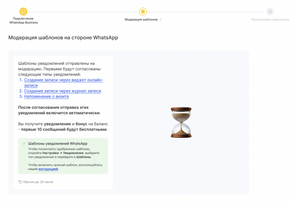 После одобрения этих трех типов уведомлений интеграция может быть активирована.