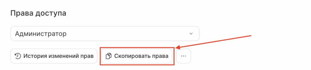 Чтобы не настраивать одни и те же права доступа, их можно скопировать для другого сотрудника. Копирование прав доступно как на этапе отправки приглашения, так и для сотрудника уже добавленного в филиал.