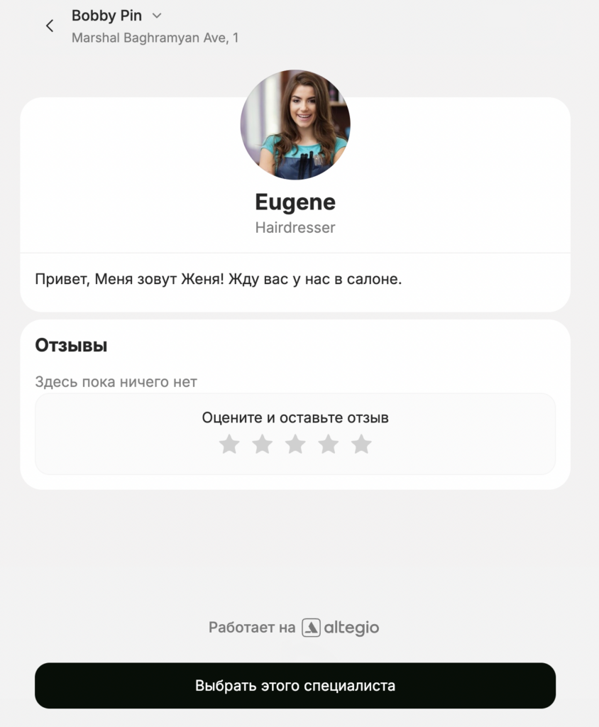 Добавьте описание сотрудника, которое будут видеть клиенты при оформлении записи.