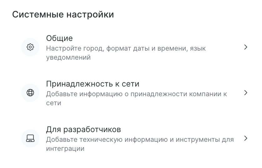 Используйте Системные настройки, чтобы задать глобальные параметры компании и технические настройки.