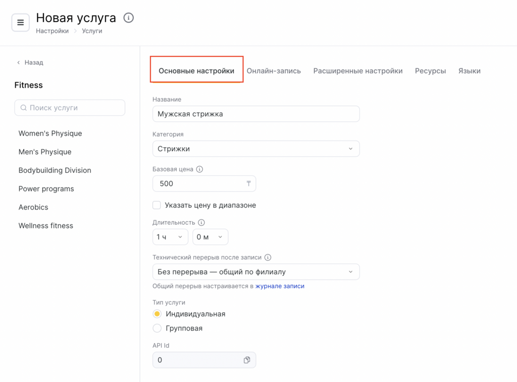 Этих настроек достаточно, чтобы создать услугу, но для полноценной работы в программе и онлайн-записи необходимы и другие настройки.