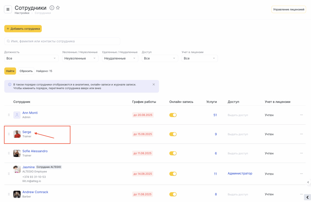 1. Перейдите в раздел «Настройки» > «Настройки записи» > «Сотрудники».